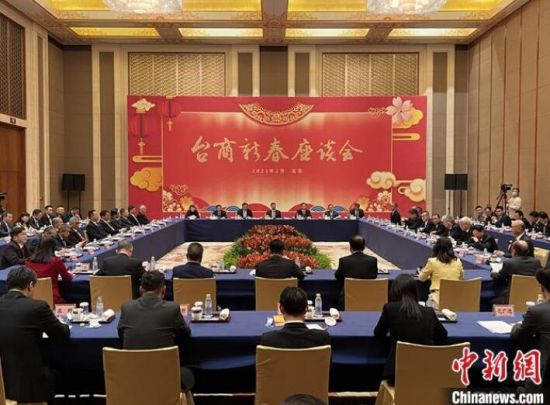 2月5日,中共中央臺辦、國務院臺辦在北京釣魚臺國賓館舉辦2023年臺商新春座談會,50多位臺商代表參會。 圖/中新社記者 路梅
