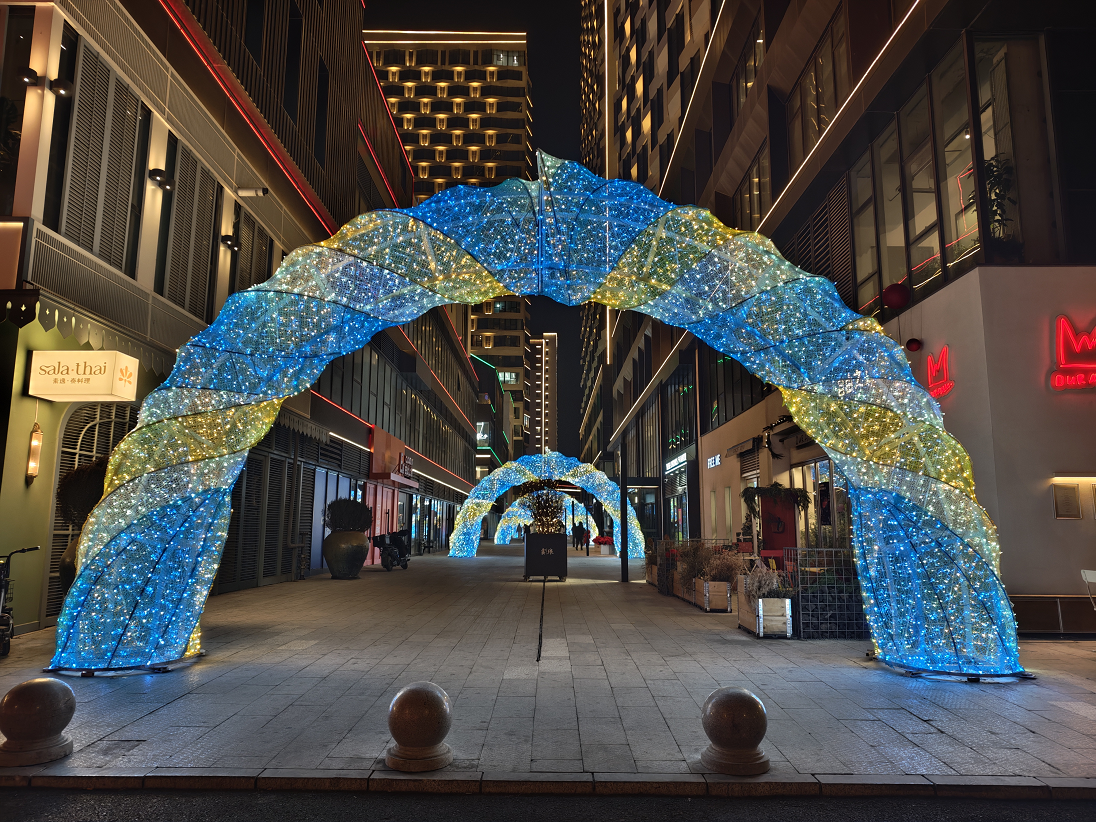 活動(dòng)當(dāng)晚,阿卡貝拉樂團(tuán)的動(dòng)人歌聲為亮燈儀式拉開序幕。80萬顆LED燈珠組成的8米高流光燈帶同步點(diǎn)亮,與13米高的巨型云杉童話樹交相輝映,搭配光影瀑布、歐洲網(wǎng)紅天使燈陣、光影堤岸等多組藝術(shù)裝置,將青怡坊云瑯打造成流光溢彩的“童話秘境”。游客穿梭其中,步步皆景、處處可打卡,沉浸式感受“現(xiàn)實(shí)版童話世界”的獨(dú)特魅力。