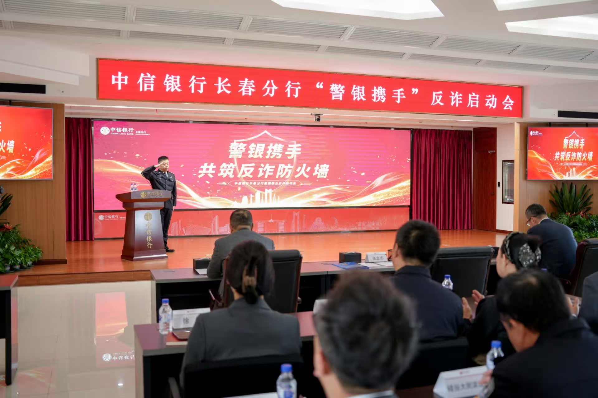 10月23日上午9時(shí),中信銀行長春分行與長春市公安局刑偵支隊(duì)聯(lián)合舉行“警銀攜手,共筑反詐防火墻”啟動(dòng)會(huì)開啟儀式。市局刑偵支隊(duì)有關(guān)領(lǐng)導(dǎo)及反電信網(wǎng)絡(luò)詐騙中心專家,吉林金融監(jiān)管局消保部門負(fù)責(zé)人、各區(qū)派出所民警、社區(qū)代表、老年大學(xué)相關(guān)負(fù)責(zé)人,以及中信銀行總分行相關(guān)領(lǐng)導(dǎo)和員工代表共同參會(huì)。