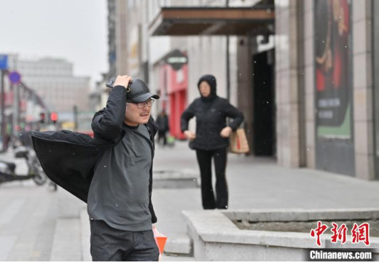 3月12日,長(zhǎng)春市迎來大風(fēng)天氣,市民捂住帽子在風(fēng)中行走。 張瑤 攝