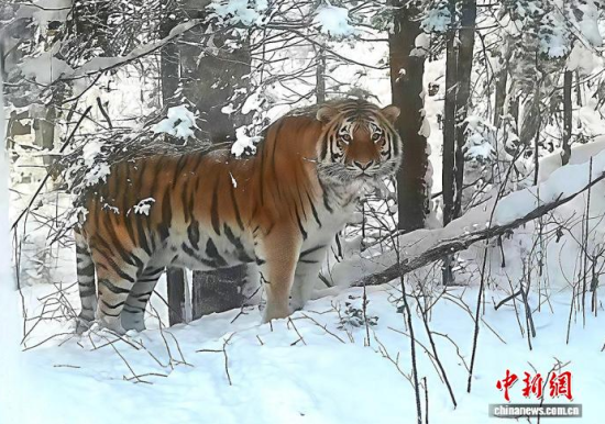 2024年12月3日,長白山保護(hù)區(qū)工作人員發(fā)現(xiàn)的野生東北虎,拍攝時(shí)與老虎距離不到10米。(資料圖)(吉林省林業(yè)和草原局供圖)
