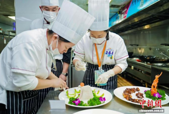 當天上午,多支代表隊在后廚忙碌,操作臺上,參賽廚師依照藥膳指導師開具的方子,將精選的人參等藥材進行預處理,再與母雞、松花江魚等主料一同入鍋!斑@道湯適合體虛者,我們控制了人參用量,確保其口味和養(yǎng)生功效。”一位選手介紹。