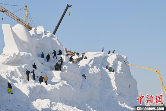 長白山“云頂天宮”雪雕正式落成