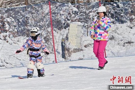 小朋友在滑雪場(chǎng)學(xué)習(xí)滑雪。張瑤 攝