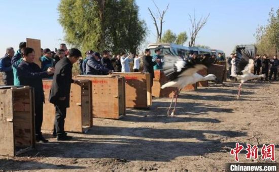 中新網(wǎng)長春11月19日電 (張瑤 王萬峰)吉林省林業(yè)和草原局19日介紹,該局近日組織野生動物救護(hù)部門將救助的11只東方白鸛成功護(hù)送到天津七里海國家濕地公園與已遷徙至那里的種群匯合。這是吉林省第一次大規(guī)?缡∽o(hù)送“鳥界國寶”東方白鸛歸隊。