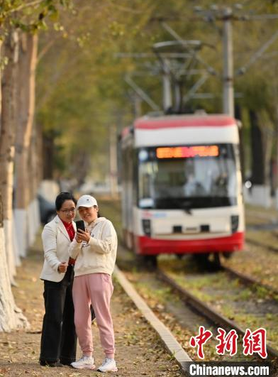 10月9日,吉林長(zhǎng)春,一輛有軌電車(chē)在泛黃的樹(shù)木中行駛,呈現(xiàn)出別有韻味的秋季景致,吸引游客打卡。中新社記者 張瑤 攝