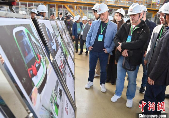 10月14日,吉林長春,外賓在中車長客體驗地鐵列車。當天,50多個國家的200多名政黨領導人、部分外國駐華使節(jié)和外國在華工商界代表等到訪吉林長春,赴中國一汽、長光衛(wèi)星、中車長客等科技企業(yè)參觀,點贊制造業(yè)尋求合作機會。中新社記者 張瑤 攝