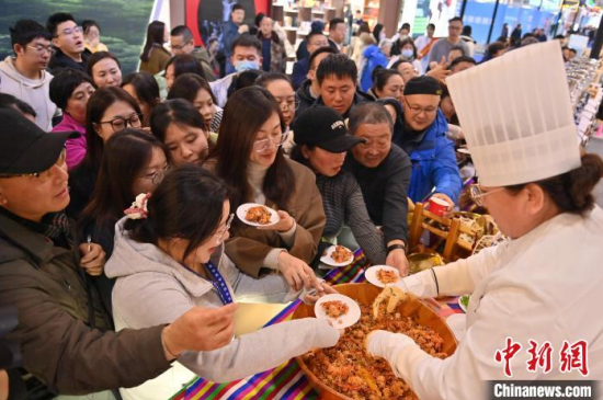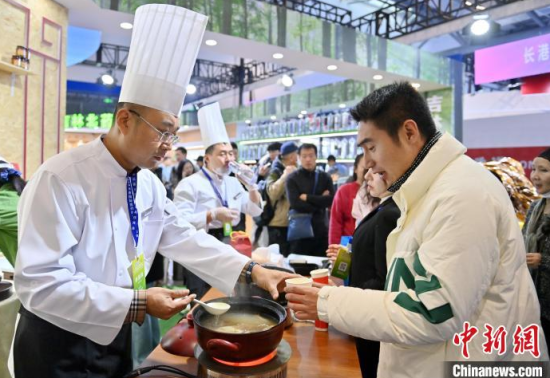 12月7日,吉林長春,市民在品嘗人參藥膳。當天,2024長春國際醫(yī)藥健康產業(yè)博覽會開幕,在人參展區(qū),展示了百年野山參、人參藥膳及人參深加工產品。中新社記者 張瑤 攝