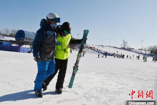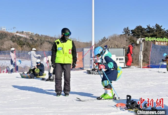 1月15日,在位于長春的天定山滑雪場,何海東在檢查雪道護(hù)網(wǎng)。何海東是一名滑雪巡救員,雪季期間,雪友數(shù)量激增,何海東的工作也變得異常繁忙。他要在零下二十?dāng)z氏度的天氣中日行三萬步,全面巡查雪道環(huán)境,排查安全隱患,如有意外他將第一時間對傷者實(shí)施救助。中新社記者 張瑤 攝