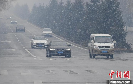 3月25日,吉林長春,市民冒雪出行。當天,吉林省迎來雨雪天氣,多地進入“降溫模式”,局地最低氣溫降至零下。中新社記者 張瑤 攝