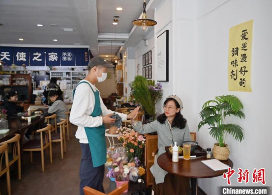 5月8日,吉林長春,“天使之家”餐飲店的店員在收拾餐桌。這里的部分工作人員是孤獨癥患者,這家店旨在助力青年孤獨癥群體就業(yè),融入社會。他們通過訓練,已經可以完成切菜、備餐、收拾店內衛(wèi)生、撤餐等工作。中新社記者 張瑤 攝