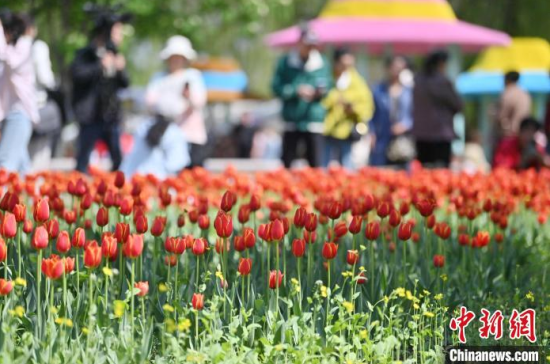 5月15日,在長(zhǎng)春市長(zhǎng)春公園內(nèi),近十萬(wàn)株郁金香競(jìng)相綻放,吸引了眾多游客前來(lái)觀賞。當(dāng)天,“幸福匯·郁見(jiàn)美好”長(zhǎng)春公園郁金香主題觀賞季系列活動(dòng)正式啟幕,游客在賞花觀景中享受夏日清涼。中新社記者 張瑤 攝