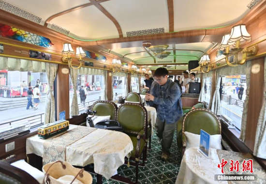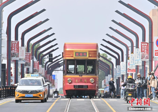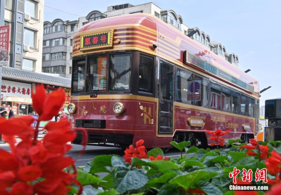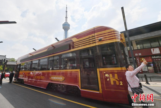 6月4日,吉林長(zhǎng)春,市民在氫能源文旅專列旁拍照。該專列由中車長(zhǎng)客研制,以歷史文化街區(qū)新民大街建筑群為設(shè)計(jì)靈感,車內(nèi)君子蘭花海主題內(nèi)飾與復(fù)古留聲機(jī)相映成趣。列車采用三級(jí)安全防護(hù)氫能系統(tǒng),單次加氫續(xù)航320公里。中新社記者 張瑤 攝