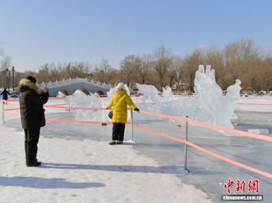 吉林長(zhǎng)春:“龍鳳呈祥”巨型冰雕吸引市民