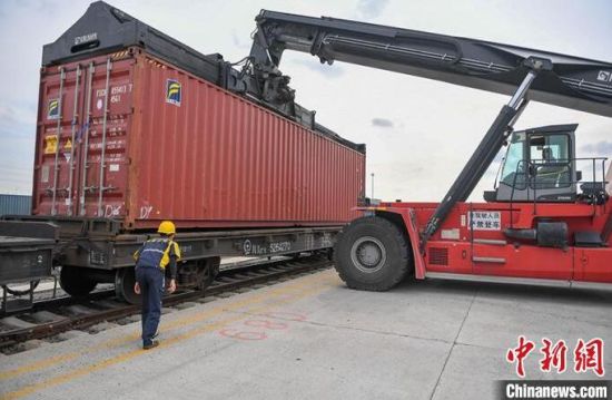 中歐班列(長(zhǎng)滿歐)正在裝運(yùn)貨物。(資料圖)長(zhǎng)春國(guó)際陸港發(fā)展有限公司供圖