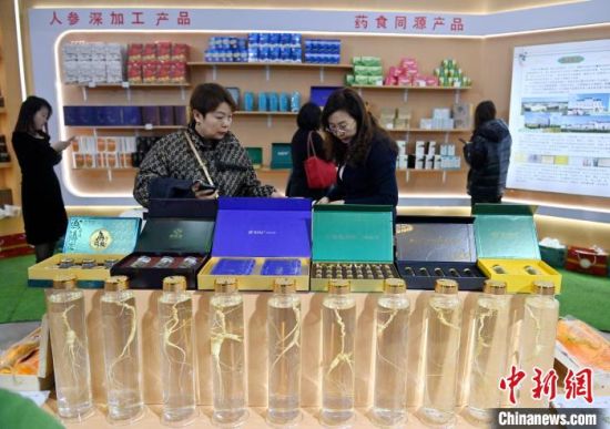 消費(fèi)者在2024長春國際醫(yī)藥健康產(chǎn)業(yè)博覽會(huì)上選購人參產(chǎn)品。張瑤 攝