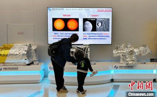 5月17日,長(zhǎng)春市民帶孩子參觀長(zhǎng)春光機(jī)所先進(jìn)科技成果。 郭佳 攝