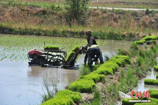 農(nóng)民在耕種水稻。(資料圖)