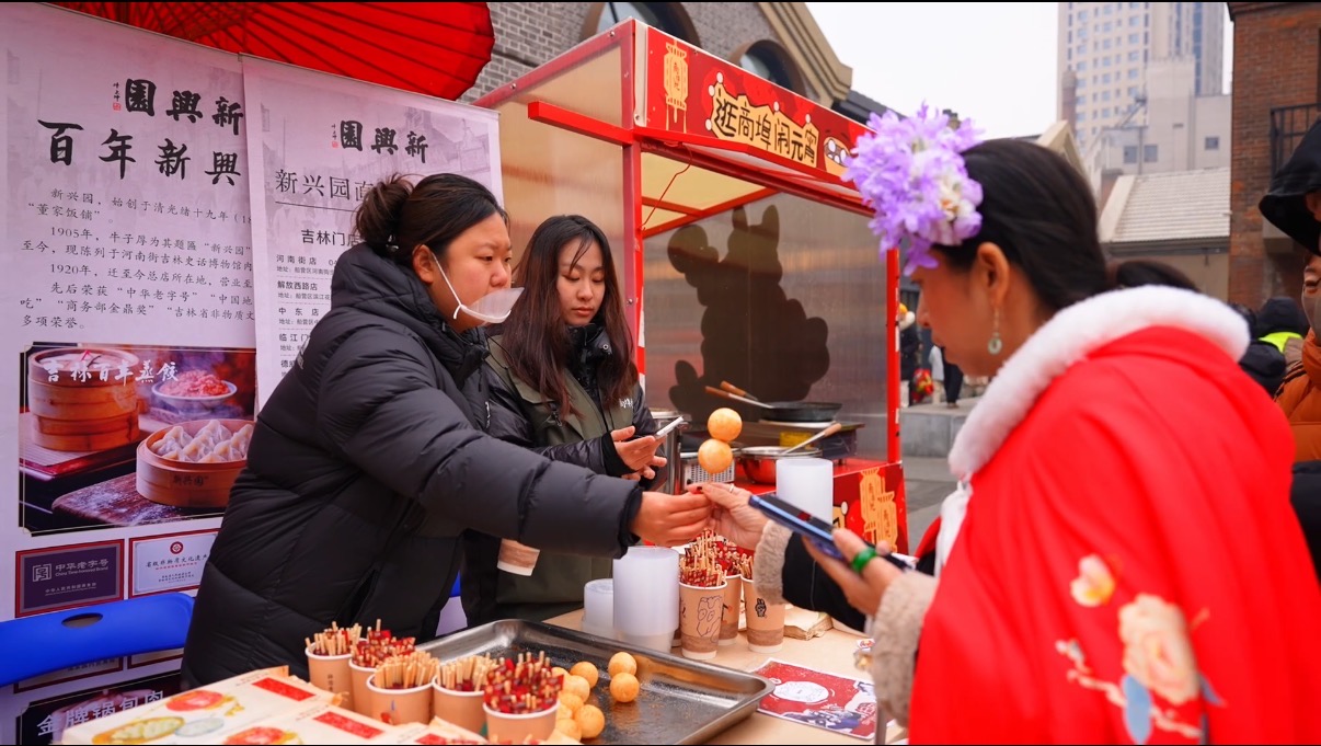 “從2月10日開市到現(xiàn)在,街區(qū)累計客流達到70萬人次,遠超我們的預期!遍L春商埠地運營策劃王朝偉穿梭在人群中,一邊調度著活動,一邊向記者介紹。他指向小廣場方向,那里排起的長隊格外醒目,中之杰和新興園兩家老字號準備了近8000份福利元宵,市民只需在線上花1分錢,就能在現(xiàn)場兌換一份熱氣騰騰的湯圓。